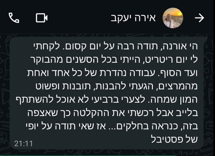 "פתחת לי עולם עם הפסטיבל שלך אורנה,
