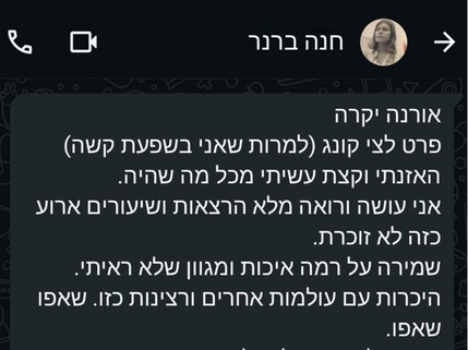 "פיניתי לי יומיים והתפנקתי והגוף שלי כל כך מרוצה עכשיו שאין לתאר"